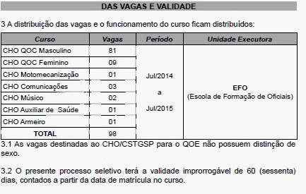 - 60 vagas para oficiais combatentes (nível médio)